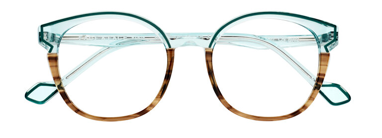 This concept draws its inspiration from the light painting experiments of Picasso and photographer Gjon Mili. Like the stroke of a brush made of light, a line of coloured lacquer draws the missing part of the glasses. At the end of the temples, the edging seems to freeze a spark. A luminescent model where transparency echoes the electric colours.